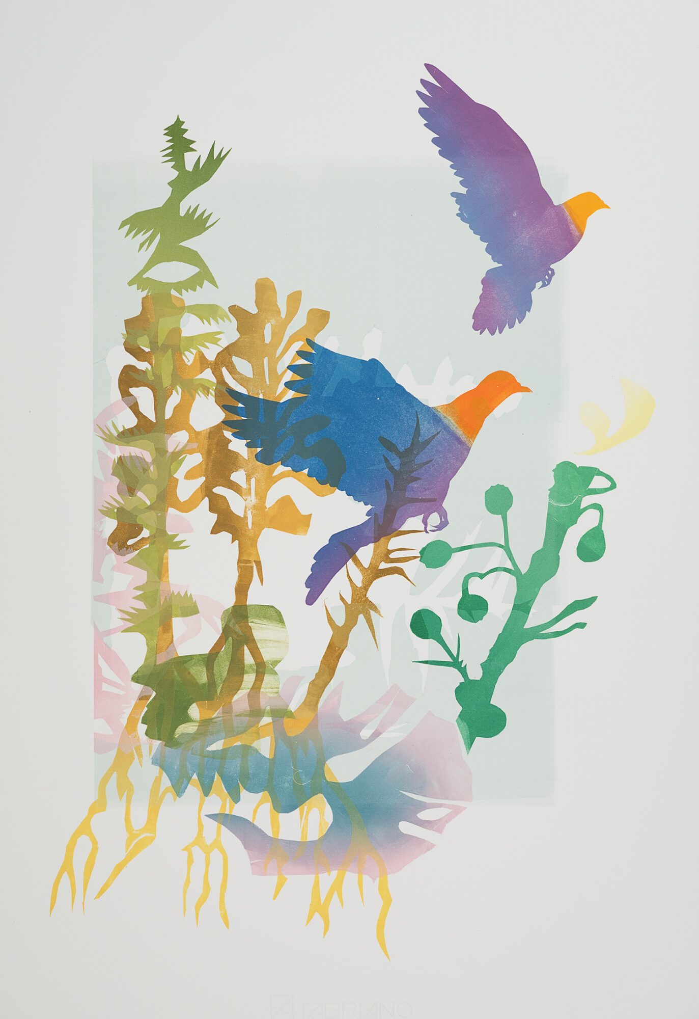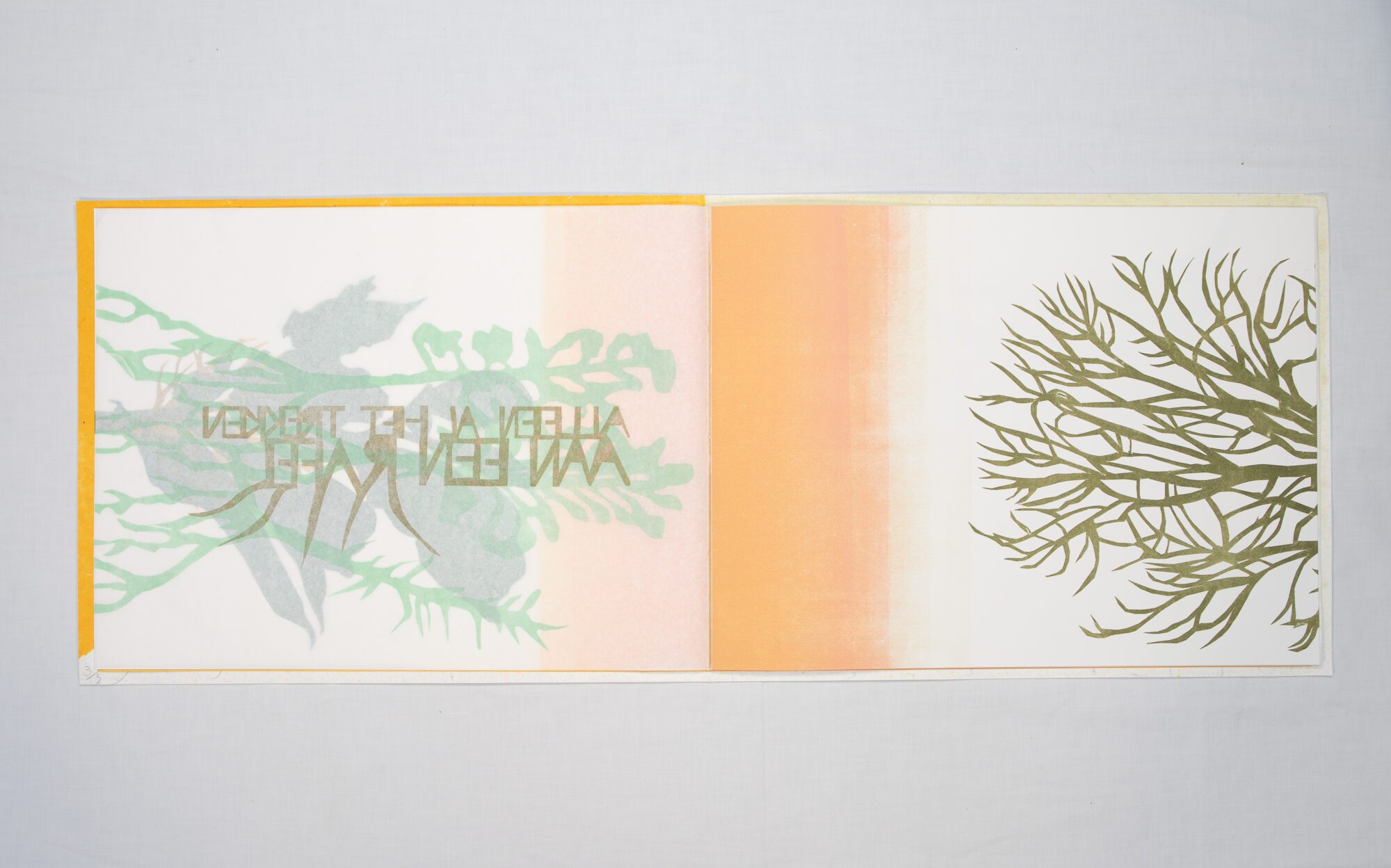 Mijn kunstenaarsboeken voer ik bijna altijd uit in de sjabloondruktechniek: het afdrukken van knipsels. Een techniek die zich er bij uitstek voor leent om in kleur te werken.