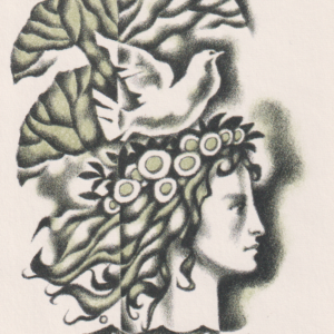 Litho van Vojtech Cinybulk – Portret en face van een vrouw met duif