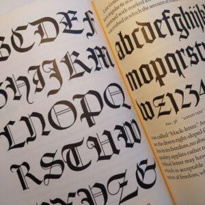 Middeleeuwse alfabetten & geschiedenis van het schrift & vele krantenknipsels