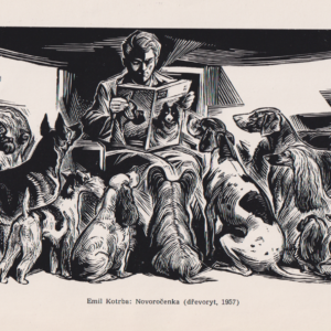 Houtgravure van Emil Kotrba – Voorlezen aan de honden
