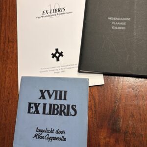 3 mapjes met respectievelijk 10-14-18= 42 exlibris van Vlaamse kunstenaars
