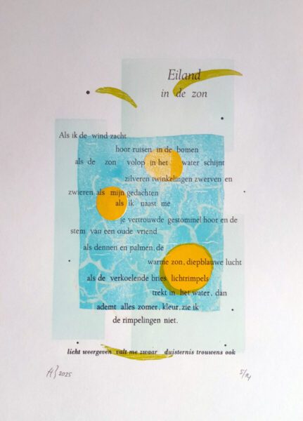 Eiland in de zon, 2025, 21 × 29,7 cm.