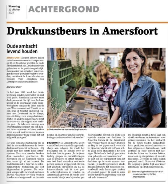 De drukkunstbeurs in de krant ‘De Stad Amersfoort’. Hopelijk komen er veel bezoekers op af! Tot zaterdag!