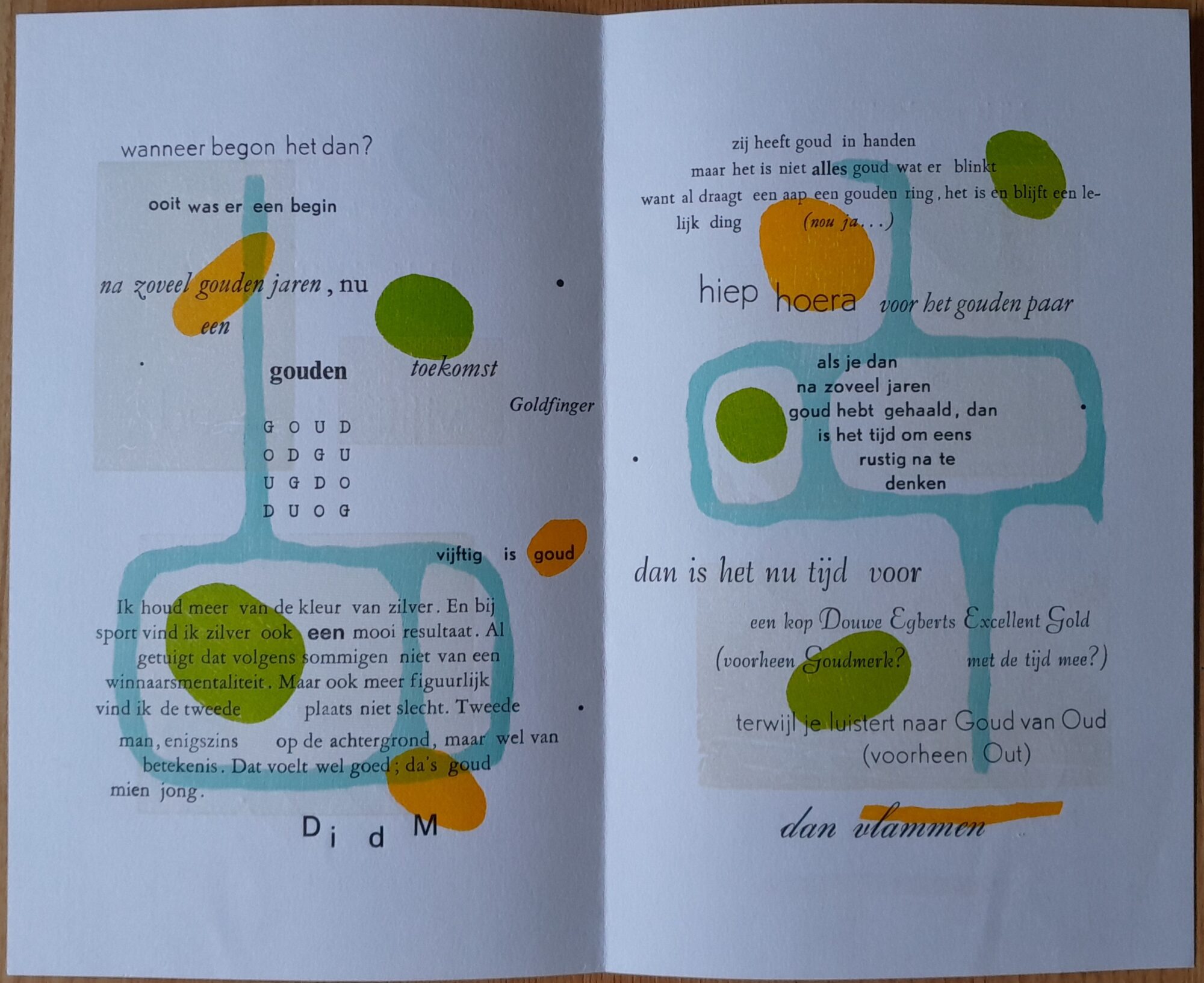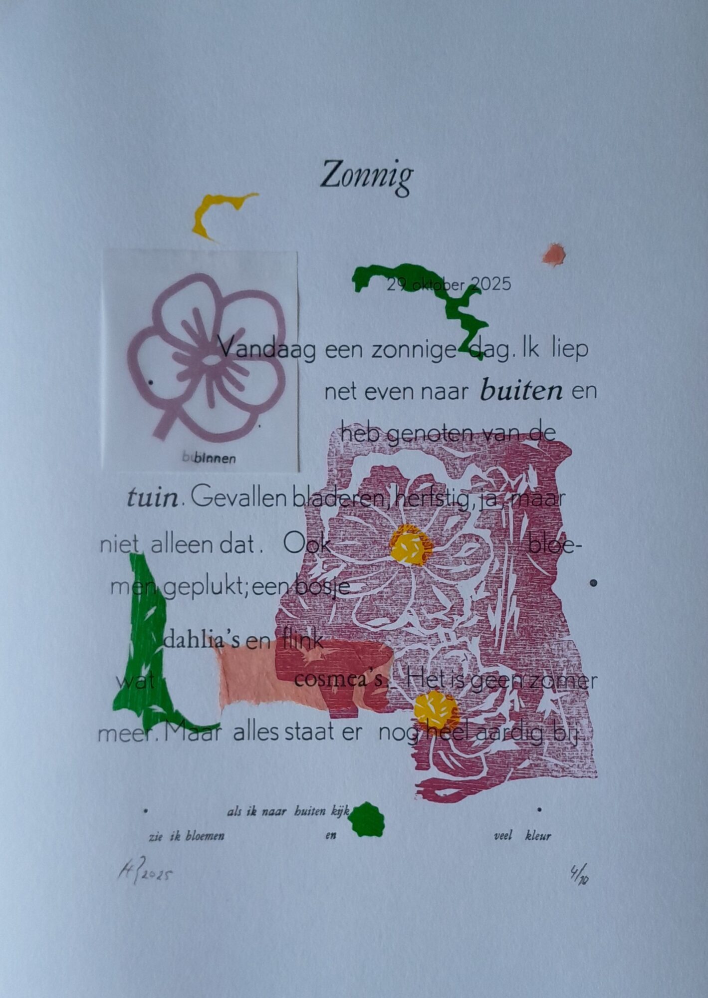 Typografie, houtdruk en collage, 21 × 29,7 cm, oplage 10 ex. en een paar proefdrukken; prijs: € 25.