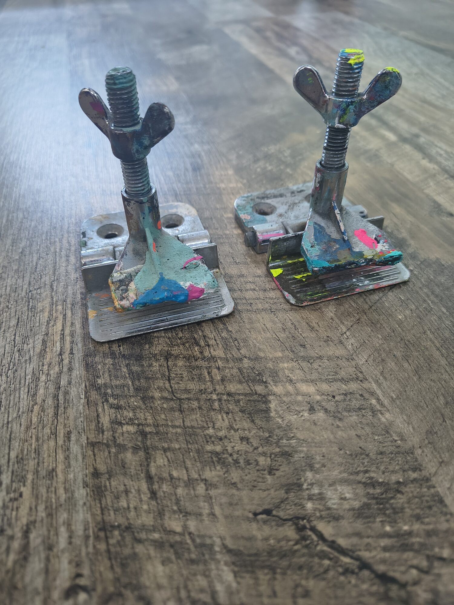 Aangeboden: 10 gebruikte tafelklemmen voor zeefdruk.