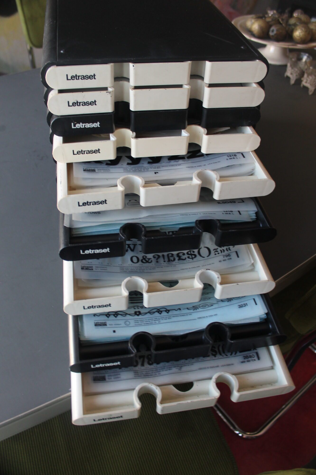 2 kastjes boordevol Letraset plakletters