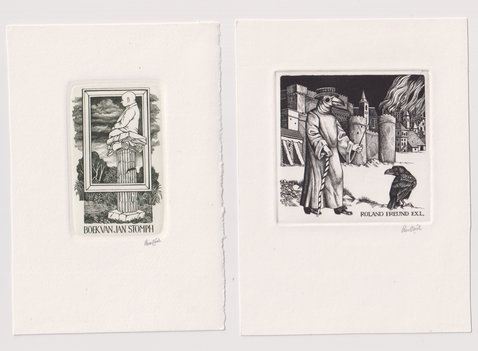 2 kopergravures en 4 houtgravures van de kunstenaar Lou Strik (1921-2001).