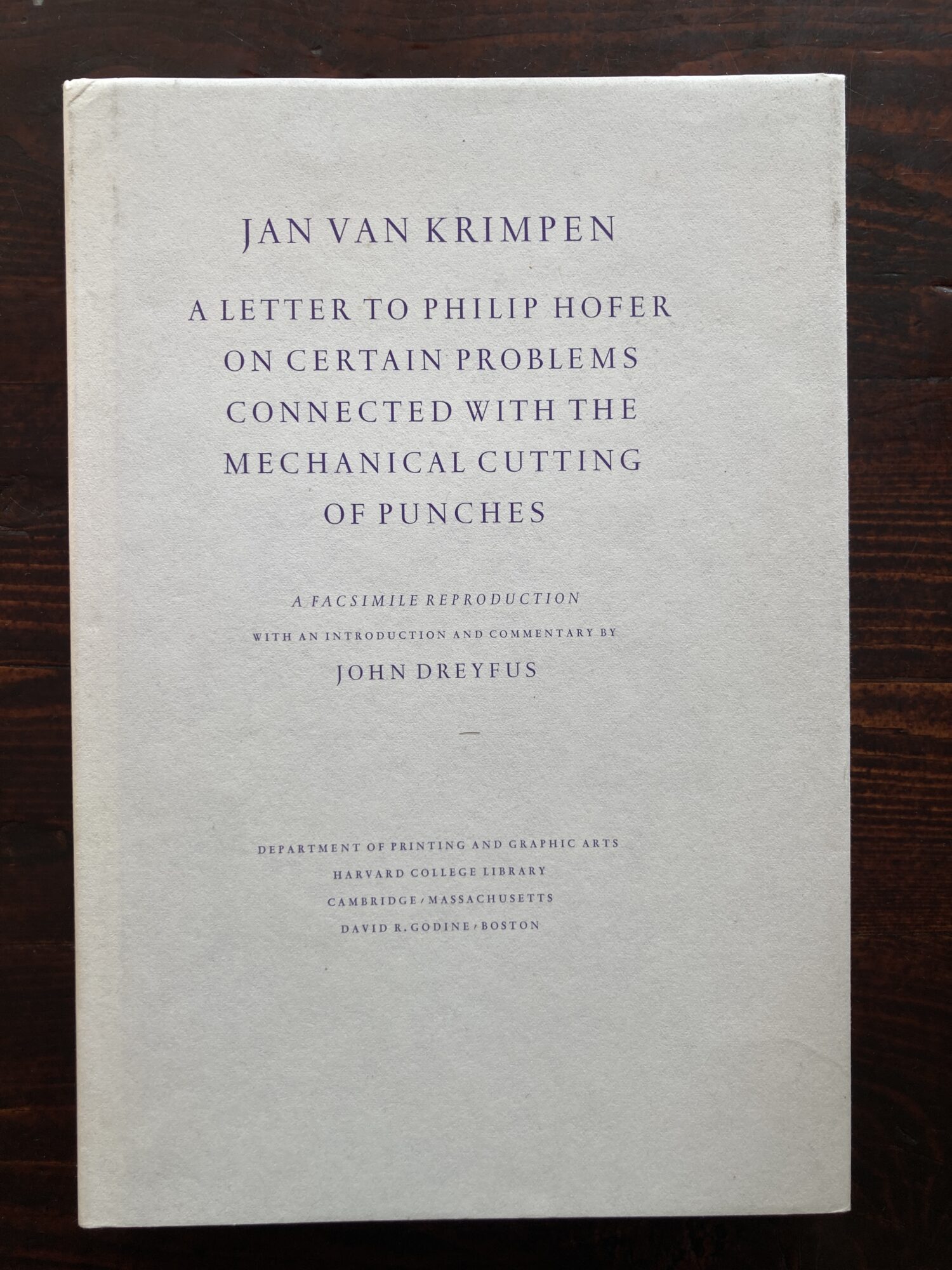 A Letter to Philip Hofer on Certain Problems Connected with the Mechanical Cutting of Punches. A Facsimile Reproduction with an Introduction and Commentary by John Dreyfus.
