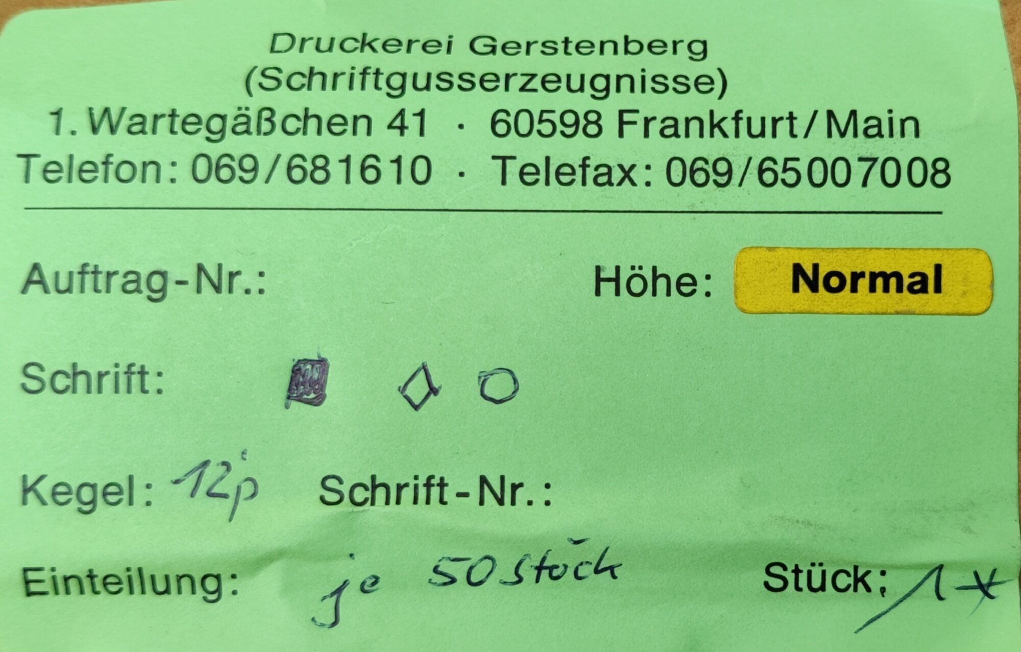 I am Anne König and I will have a booth in Amersfoort, Number 103 for “Verein für die Schwarze Kunst”. I will be very happy if you sell me your items from Rainer Gerstenberg. I work together with students in Kunsthochschule Weißensee an in Berliner Hochschule für Technik in two letterpress studios, and they will be happy to have more typo elements.