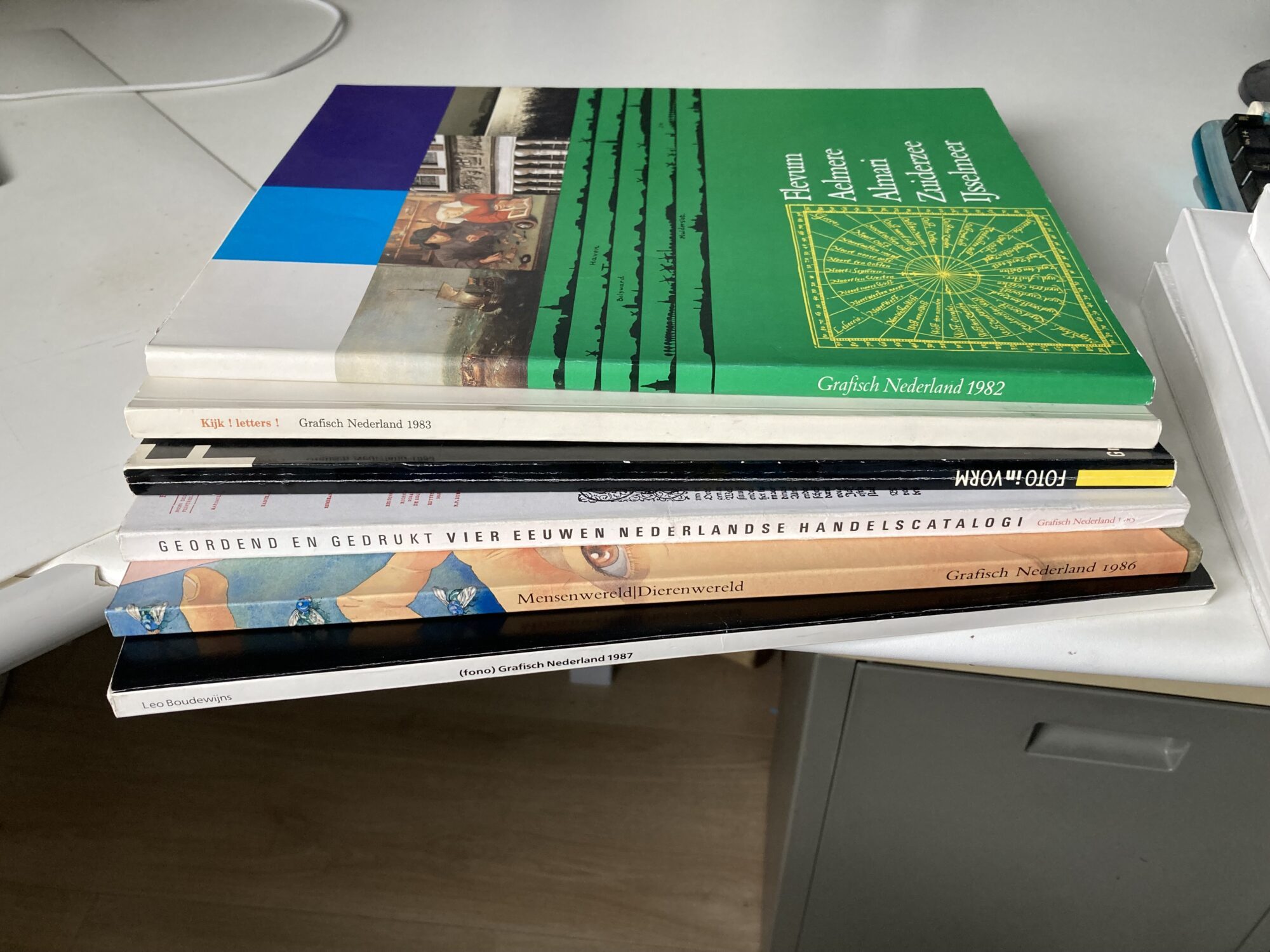 Acht boeken Grafisch Nederland. 1982-83-84-85-86-87 en drie exemplaren van 2003 waarvan een exemplaar nog in folie.