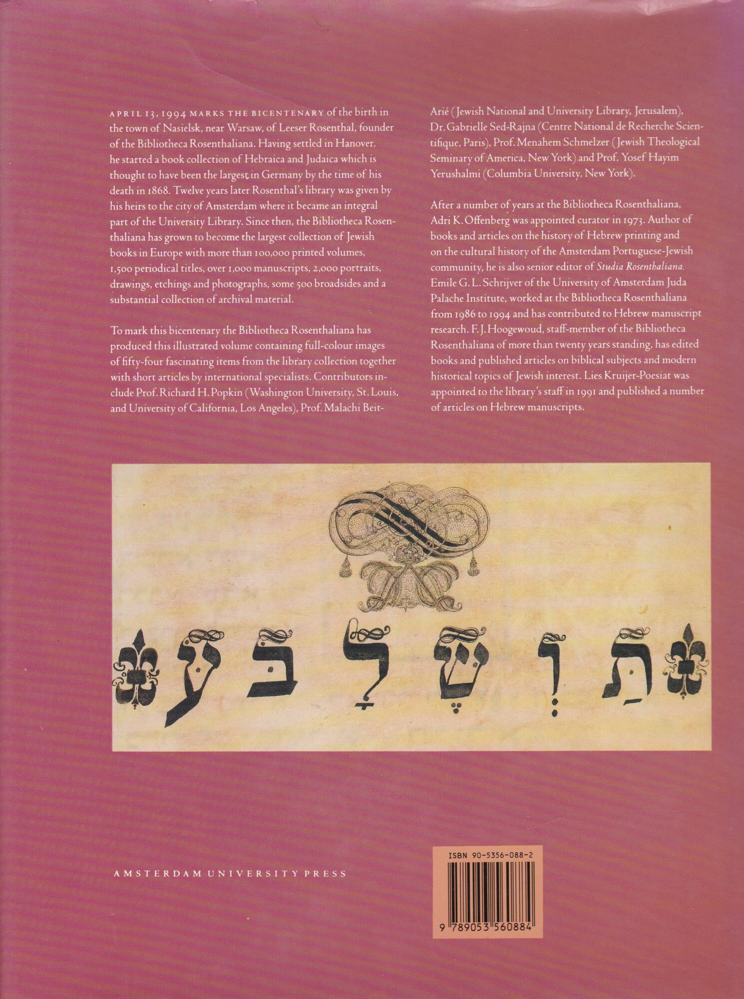 Bibliotheca Rosenthaliana Treasures of Jewish Booklore Gebonden, linnen met stofomslag 135 pag. 29 × 23 cm. 1994