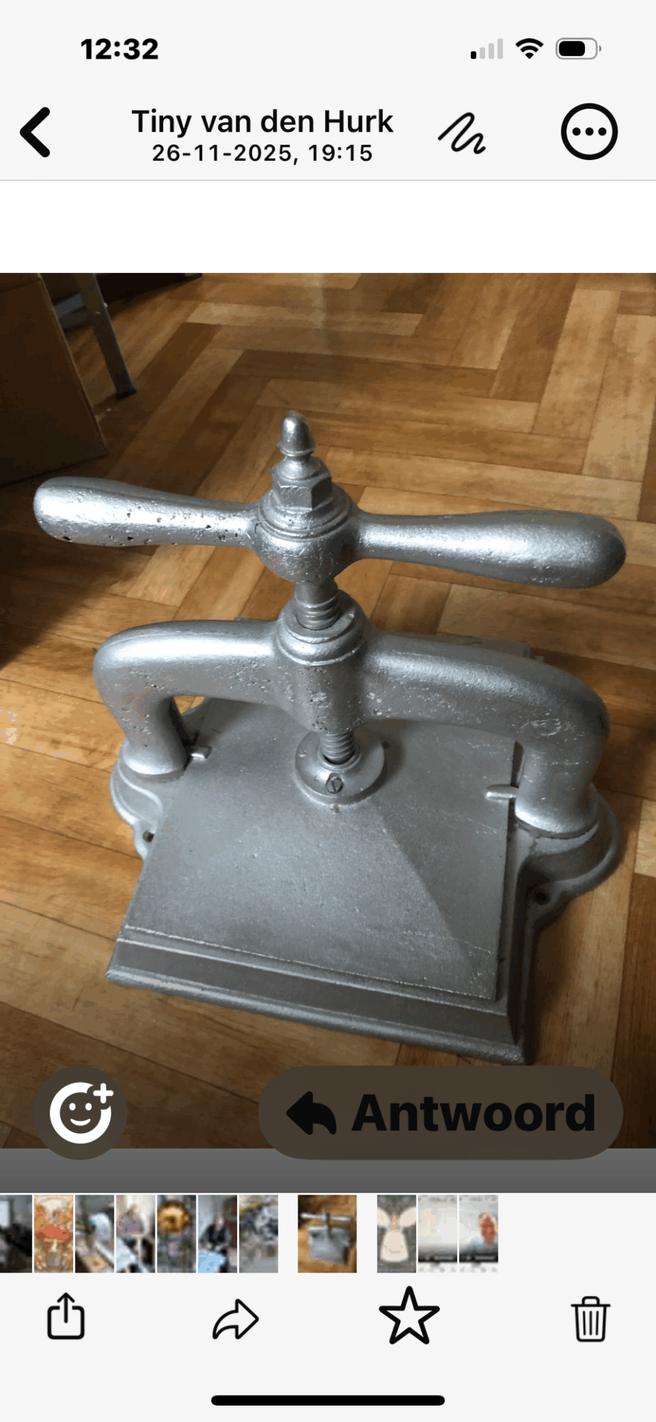 Ik zou deze boekenpers graag van je overnemen voor in mijn atelier.
