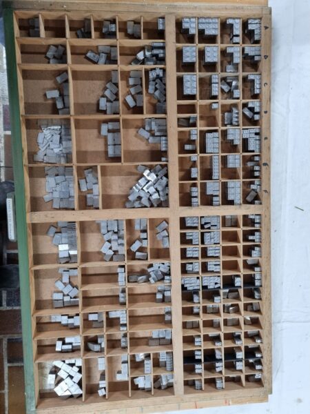 Wij hebben nog een aantal boekdrukmaterialen liggen die we graag willen verkopen. We hebben het liggen, omdat mijn vader overleden is.