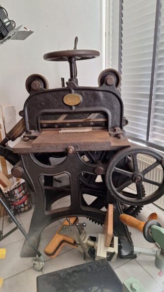 Mooie doordraaier snijmachine, museumwaardig, maar erg zwaar. Gratis op te halen.