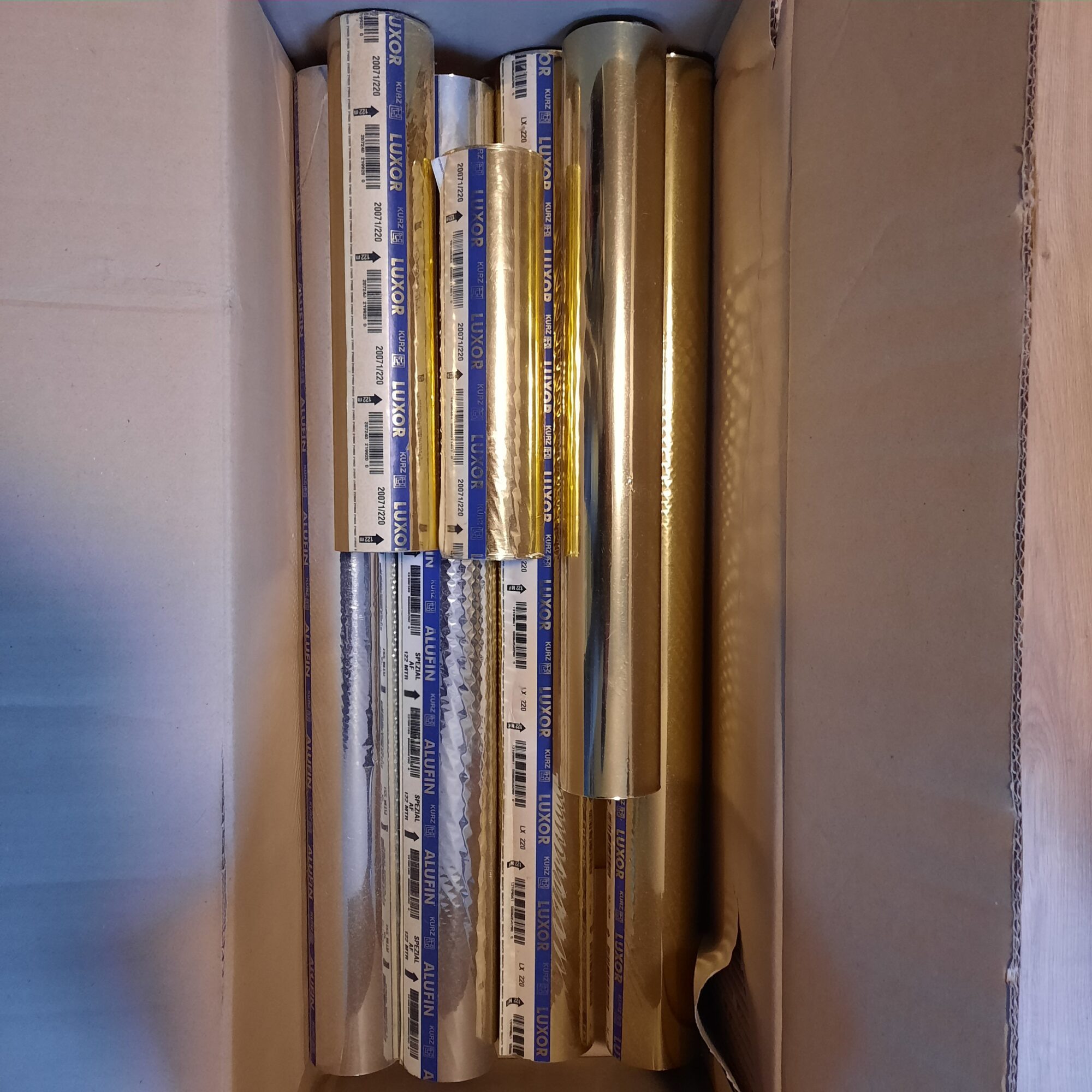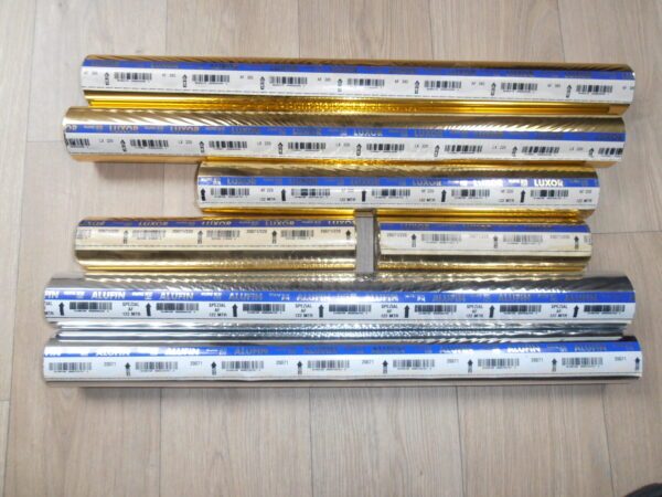 Goud, zilver en grijze folie ideaal voor het bedrukken van boeken en andere creatieve projecten. Deze folie is van het merk Luxor-Alufin en is perfect voor het toevoegen van een luxe, gouden of zilveren accent aan uw werk. Geschikt voor diverse papiersoorten en druktechnieken. Bekijk de foto’s voor de details. Het betreft hier meerdere rollen.