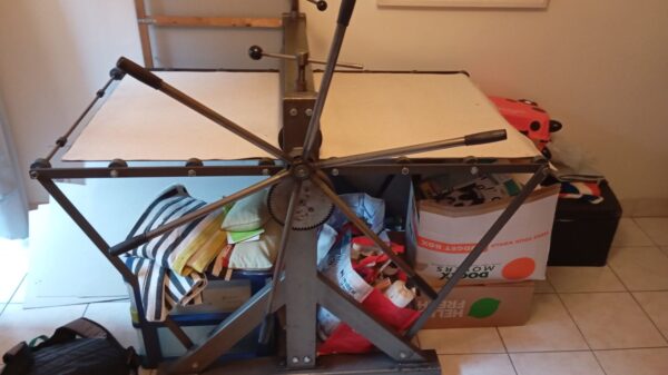 Mijn schoondochter is geïnteresseerd – voorlopig, om te starten, in ’n tafelmodel: starten met ’n persje om op tafel te plaatsen en ‘het ermee werken’ onder de knie te krijgen, de ets- ‘ stadia’ daarop uit te proberen. Vraag: HEB JIJ ZELF of WEET VAN ZO’N KLEIN PERSJE in je atelier of bij collegae ONGEBRUIKT EN TE KOOP STAAN ?