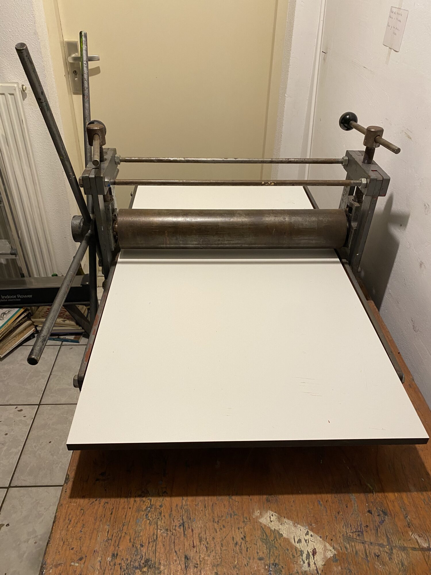 De pers gebruikte ik voor lino’s en droge naald etsen.