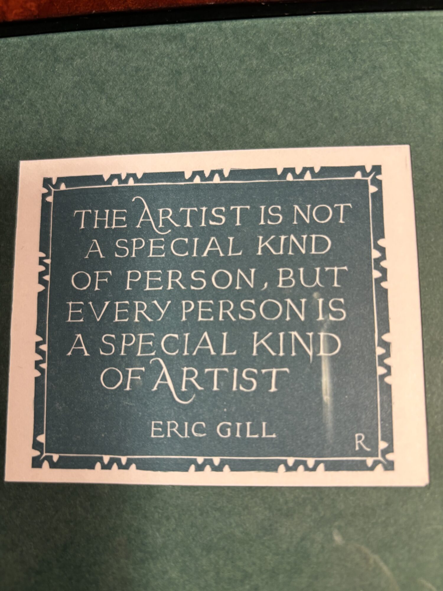 Gravure van Pam G Rueter met quote Eric Gill