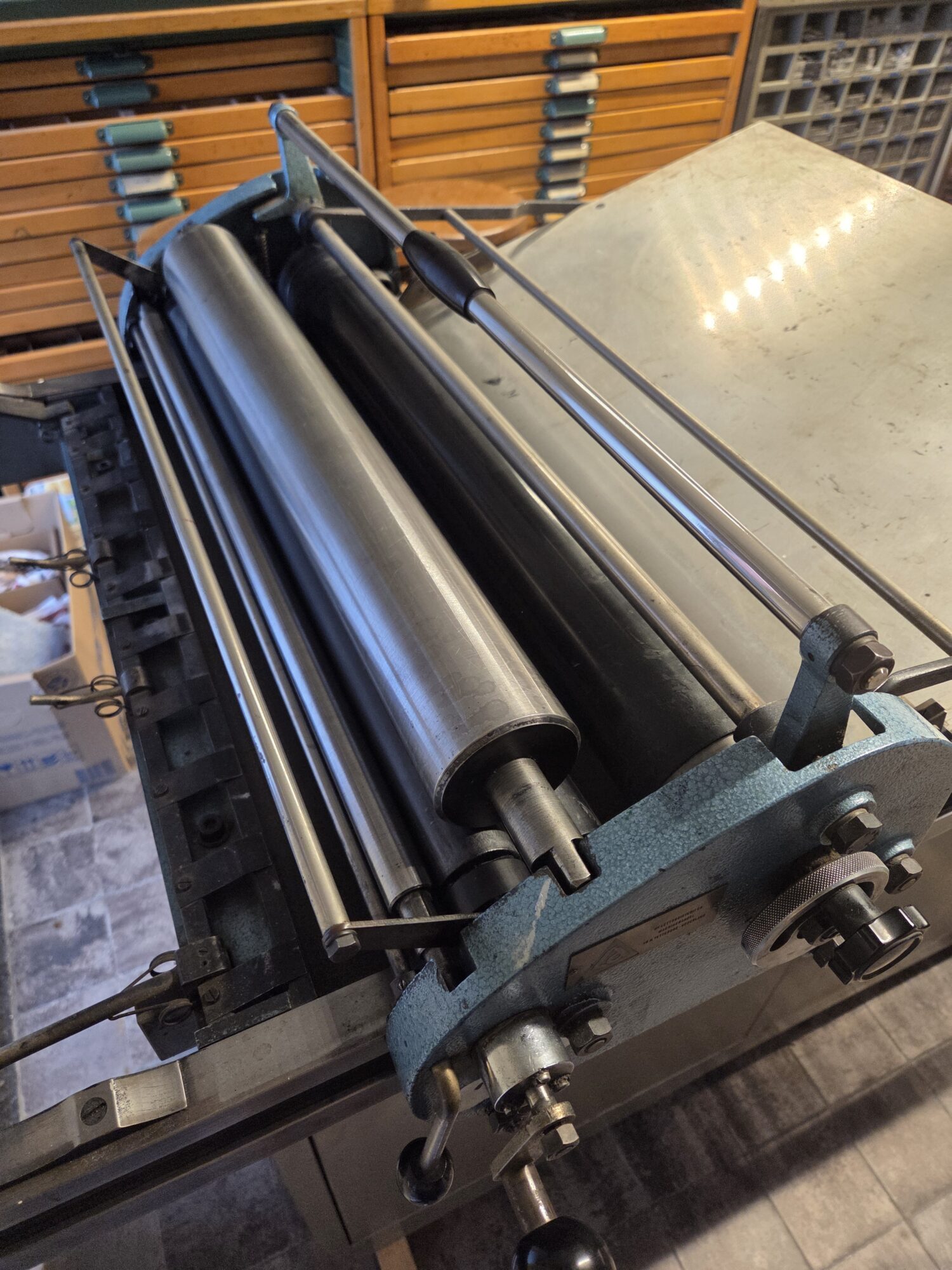 – De inktrollen moeten nagekeken worden. Ik gebruikte de inktrollen niet, maar inktte manueel in met een handrol.