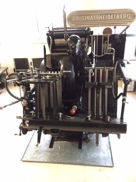 Heidelberg degelautomaat bouwjaar ±1960. (Met koperen herdenkplaat 1850-1960 viering 110 jaar Heidelberg).