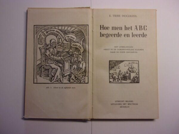 1956, het ABC met veel afbeeldingen, meest in de oorspronkelijke kleuren naar de oude originelen. Uitgeverij het Spectrum / E. Tierie-Hogerzeil Formaat 11.5 × 19 cm in hard kaft.