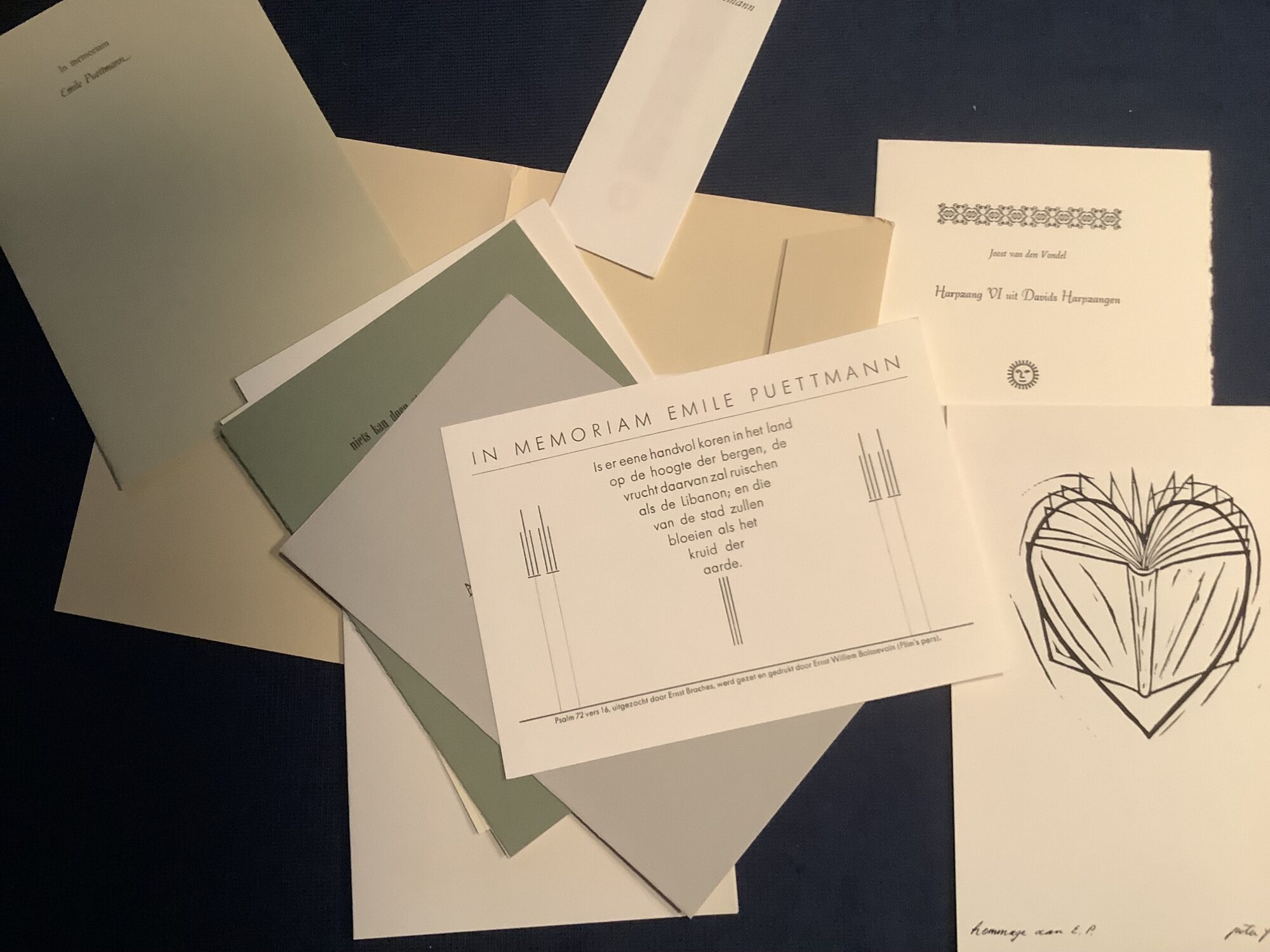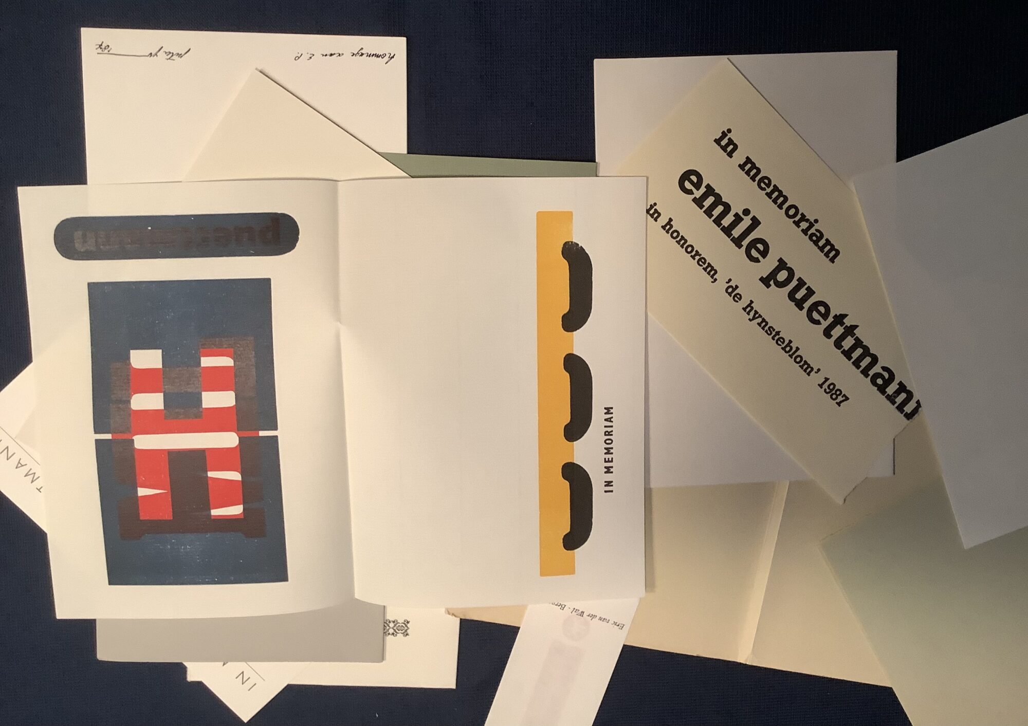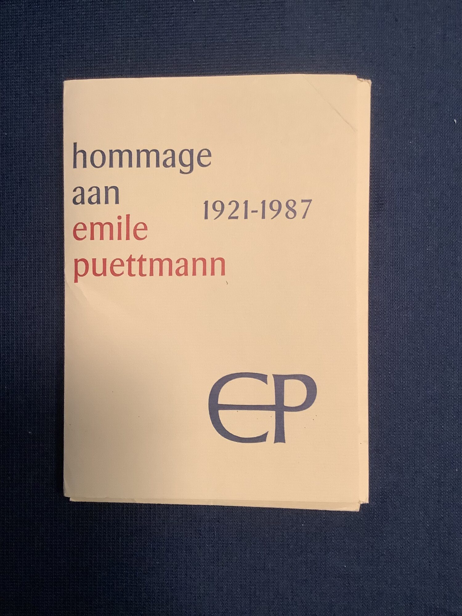 Mapje met diverse druksels ter ere aan Emiile Puettmann, oa Ewald Spieker, Clipeuspers, atalanta pers ea