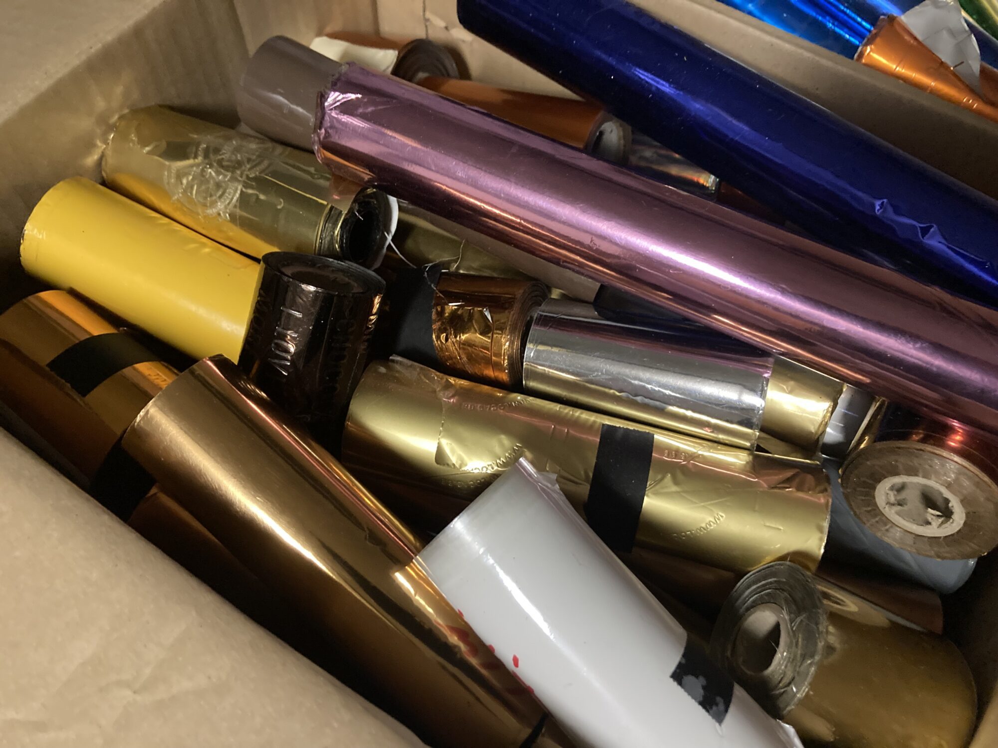 A4 doos gevuld met restanten van folie. 6-tal kilo per doos met ‘en’ lange, korte, smalle, brede, volle, gebruikte, met ref en zonder. Pretpakket as is. Voorlopig 6-tal dozen beschikbaar. Meer info op eenvoudig verzoek via e-mail.