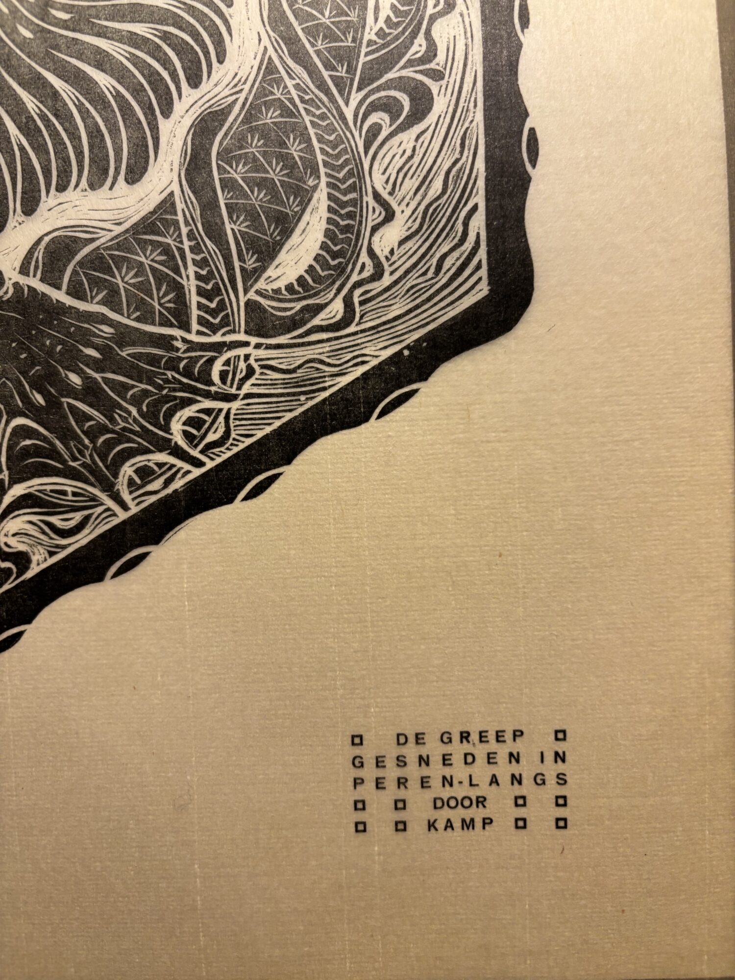 Originele houtsnede op (dun) Japans papier door Johan Bernard Kamp (1884-1953), gesneden in peren-langs.