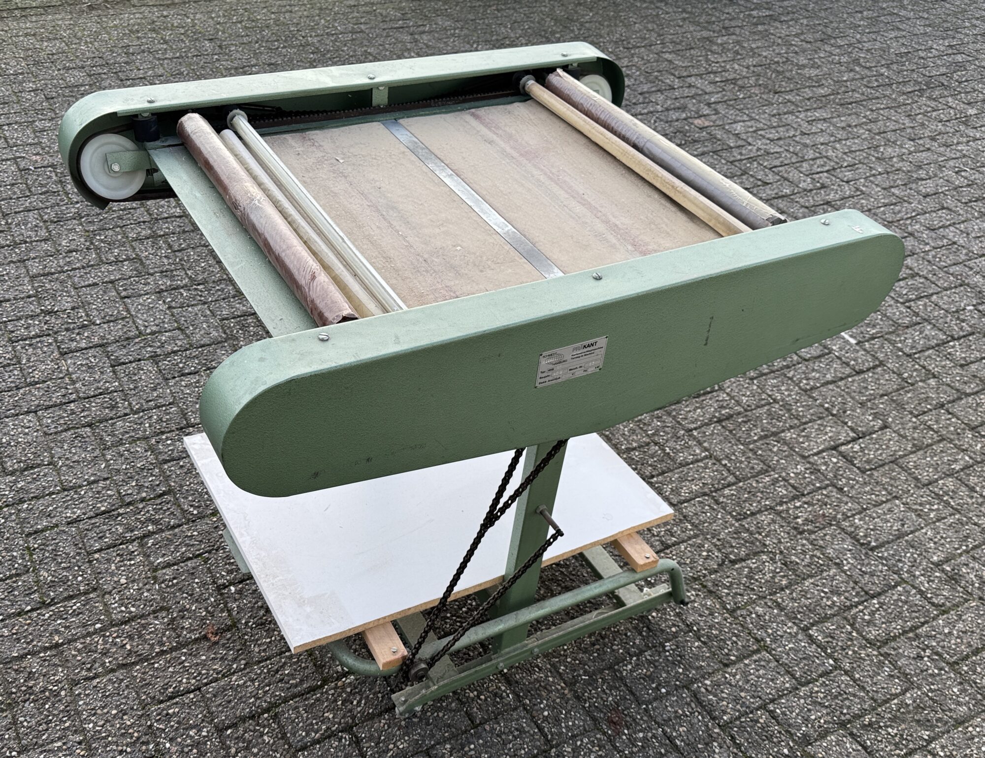 Schmedt Präkant HHS 6F Voetbediende dubbelzijdige inslagmachine Doordat hij voetbediend is bepaalt men zelf de tijd en is dus te gebruiken voor zowel warme als koude lijmen en/of traag drogende lijmen. Voor banden tot 60 × 60 cm
