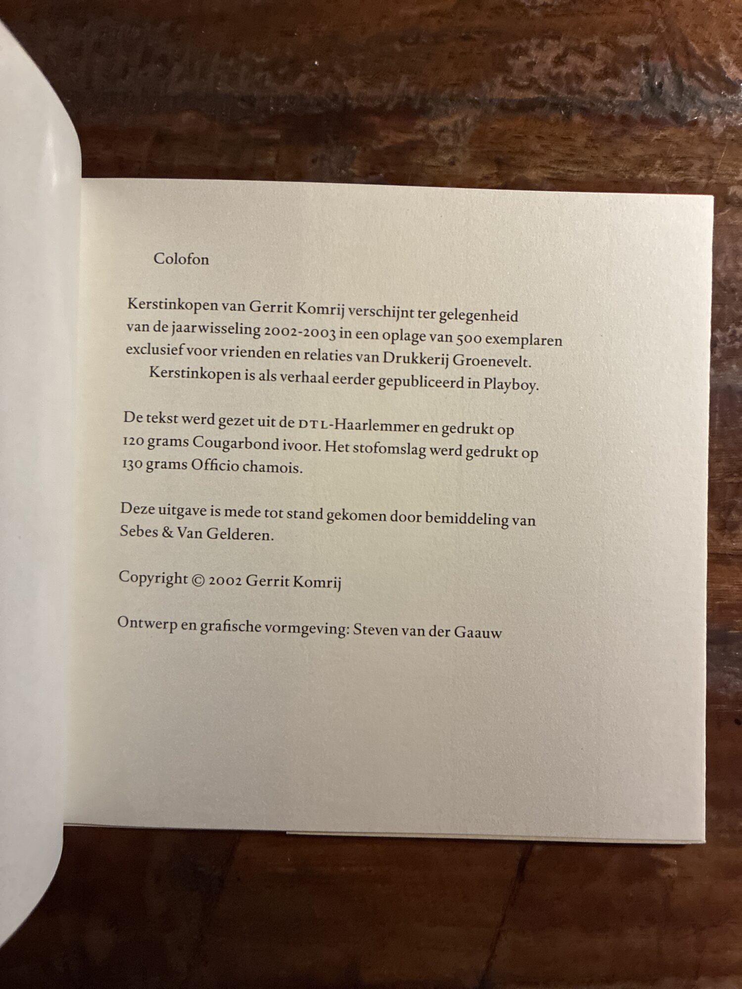Door drukkerij Groenevelt uitgegeven ter gelegenheid van de jaarwisseling 2002-2003, ‘voor vrienden en relaties’ (niet in de handel).