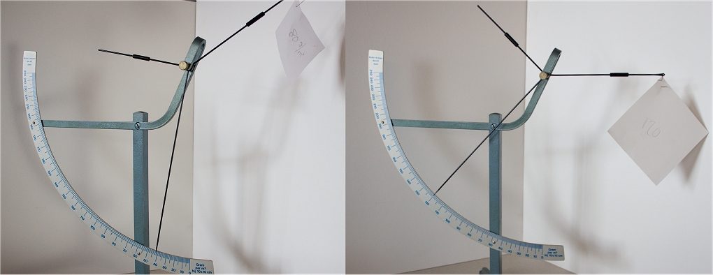ik heb op de foto’s ter illustratie zowel een 80 grams sample dat met het sjabloon is uitgesneden gebruikt, dan krijg je dus 40 als uitkomst (x2 = 80gr/m2), en ook een sample van papier van 120 gr/m2 op 10x10cm geknipt, dat geeft dus de directe uitlezing van in dit geval 120 gr/m