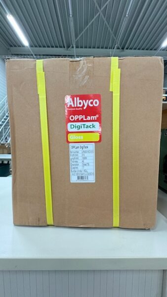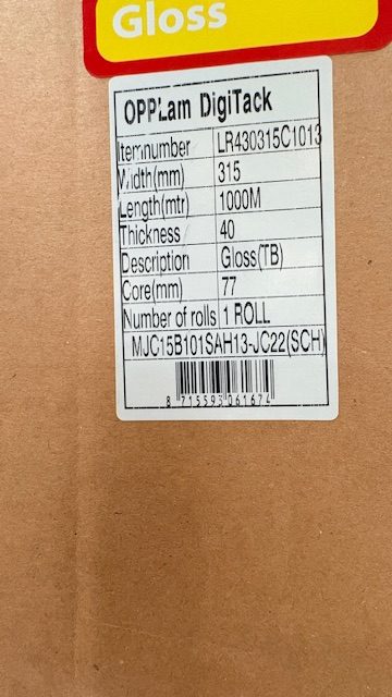 Lamineerrol GLOSS OPPLam Digitack 31,5 cm – 1000 meter dikte 40 micron. Kern is 77 mm.