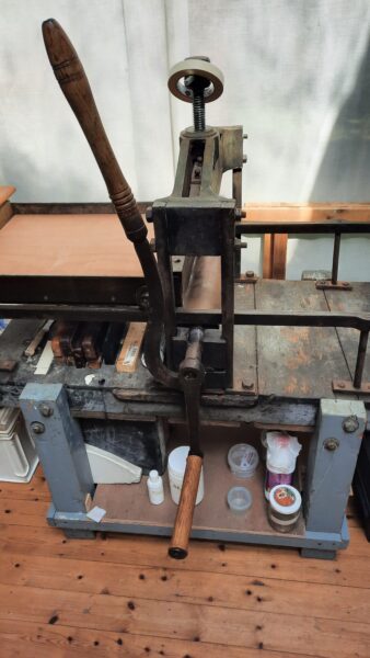 A small old litho press for sale, for stones with maximum sizes around 35 × 45 cm