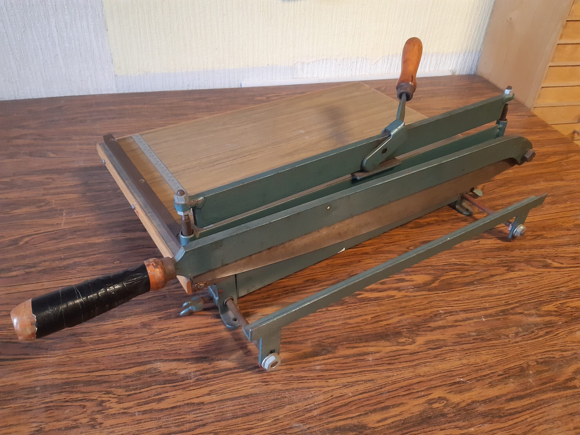 Goeddeels gietijzeren tafelbordschaar 19 kg 53 cm snijlengte blad is 56 × 36,5 cm maatvoerings-liniaal op het blad