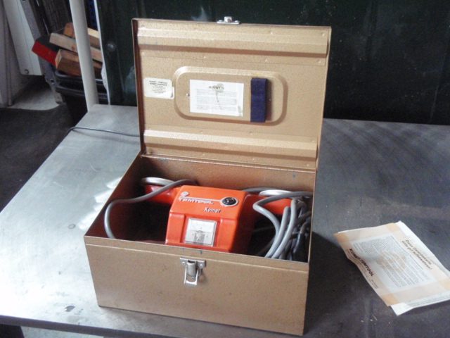 Mit diesem Gerät kann das Schneidemesser in der Maschine geschärft werden ohne es aus der Maschine zu entfernen