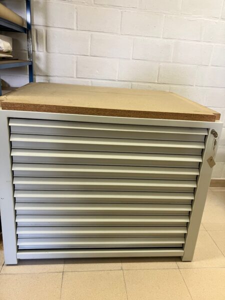 Metalen ladenkast met 10 laden en afsluitbaar met ingewerkt slot.