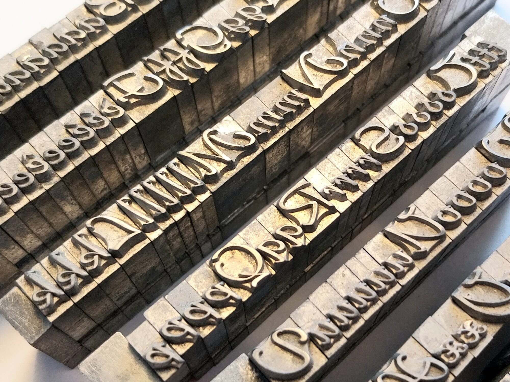 Mooie sierinitialen met onderkast, cijfers, leestekens, spaties…18 pt.