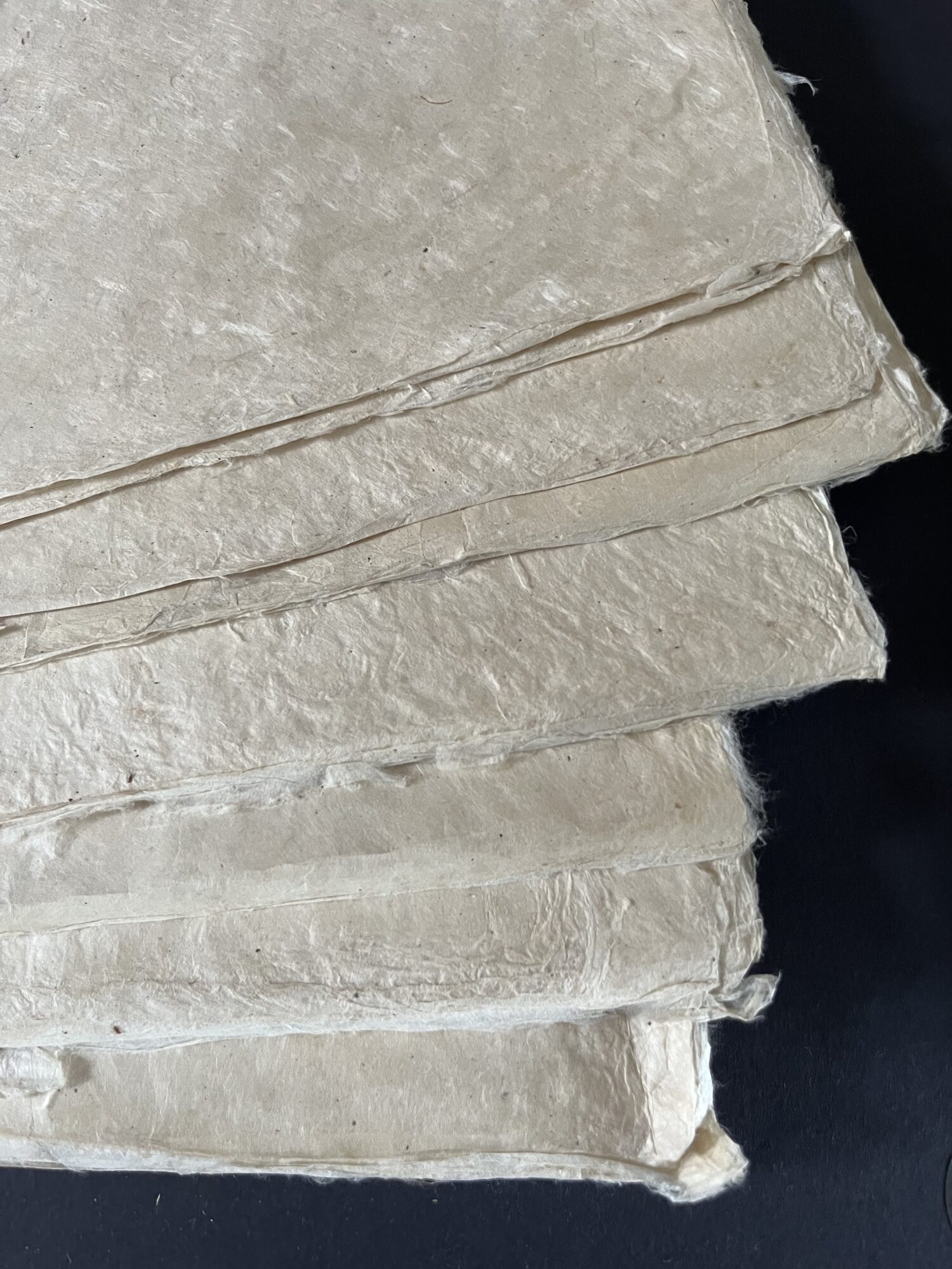 25 vellen handgeschept Nepalees papier Maat: 50 × 72 cm Vraagprijs: 2 euro per vel
