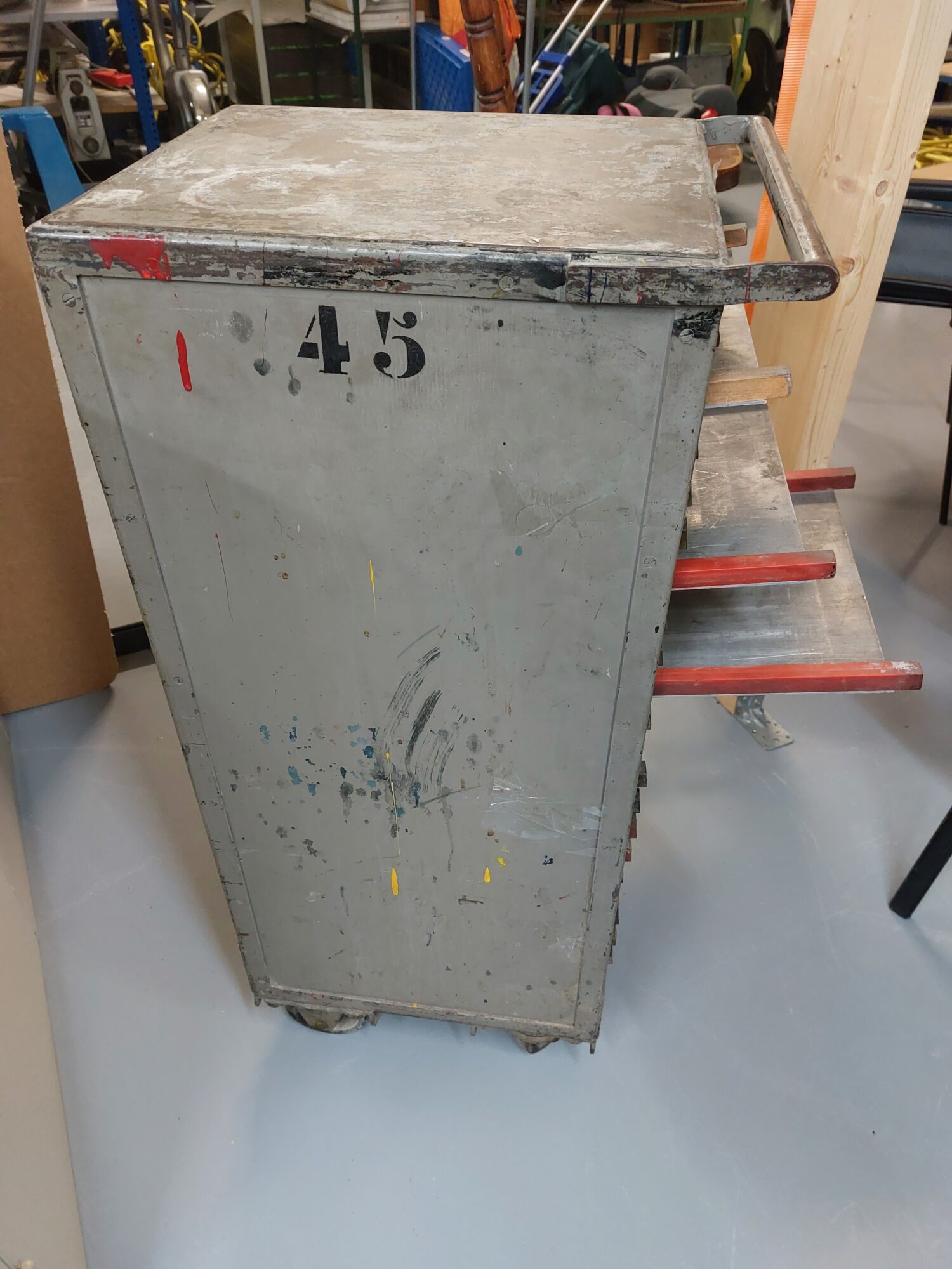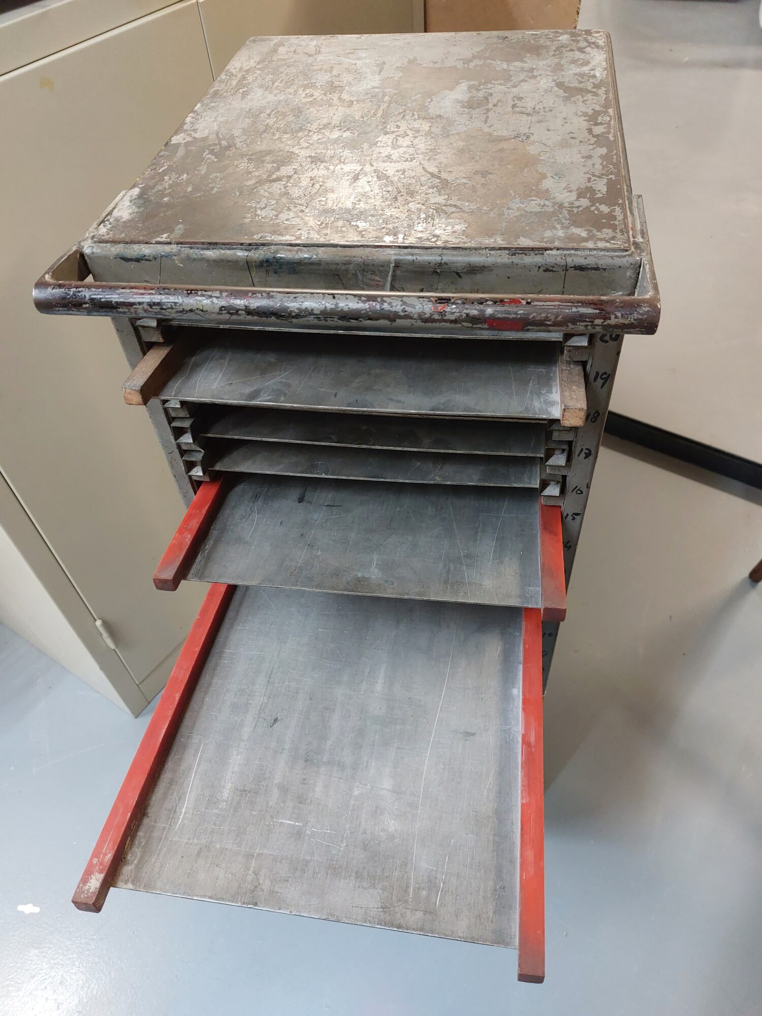 1. Zo’n galeikarretje werd destijds in het loodtijdperk gebruikt bij krantendrukkerijen om zetsel, clichés, stypes en dergelijke te vervoeren van de gieterij naar de opmaak en weer terug, nadat er matrijzen van waren gemaakt.
