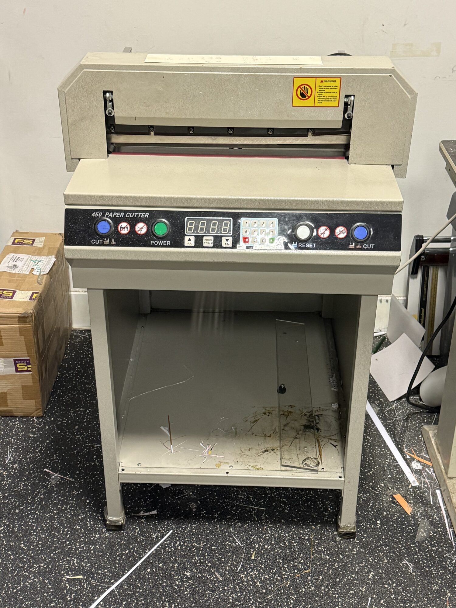 Helaas is onze snijmachine kapot gegaan, er is iets gebroken. Dus denk alleen goed voor onderdelen met onderkast met deurtjes. Op te halen in Rotterdam centrum. Op de begane grond en je kan stoppen voor de deur. Wel zelf even wat spierbundels meenemen om te tillen.