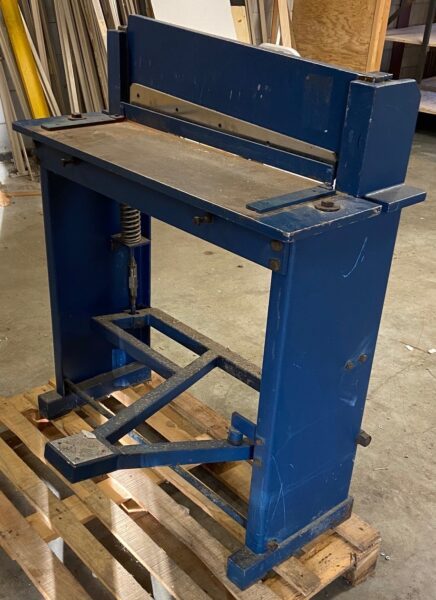 Ideaal voor de grafische werkplaats. Plaatschaar, capaciteit 70 cm. Max. 1,5 mm plaatstaal. Voetbediening.