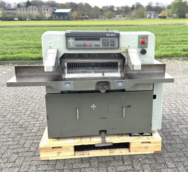 Polar 76EM Bouwjaar 1992 Digitale aflezing en programmeerbaar Verchroomde luchttafel Fotocelbeveiliging Zijtafel links+rechts Widia mes