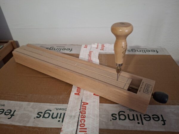 Voor de (beginnende) boekbinder: zeer nette prikmal en naaibank te koop (zie foto’s)