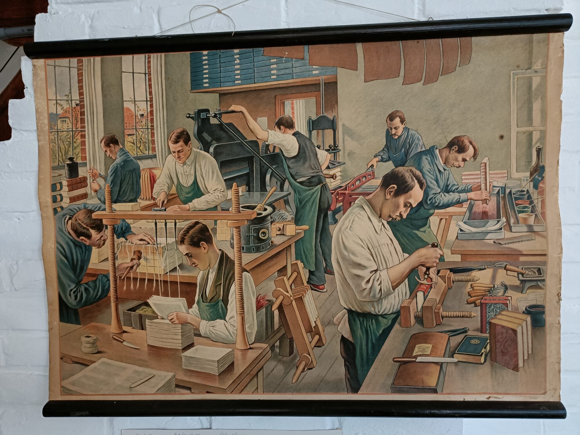 Legpuzzel met afbeelding van oude boekbinderij uitgegeven bij een jubileum van atelier de Distelkamp.