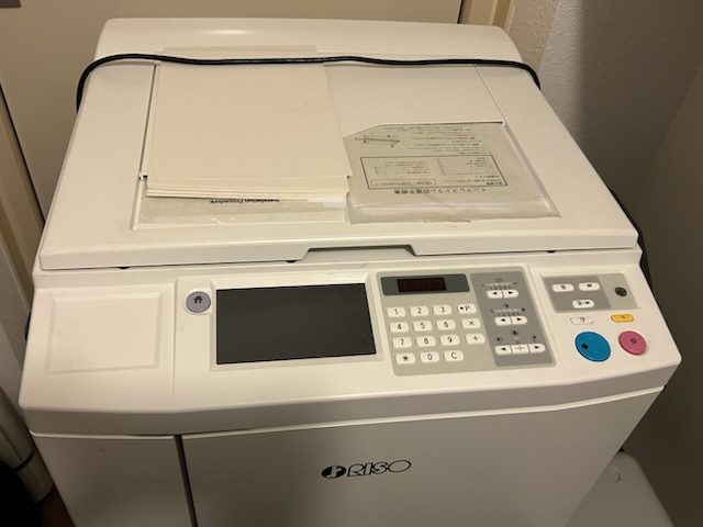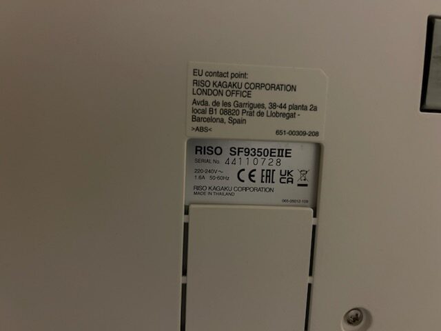 Deze Risograph is geschikt van klein tot A3-formaat, 600 × 600 dpi, tot 150 pagina’s per minuut. Incl. zwarte drum. Tellerstand: 6.200.