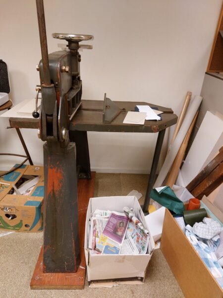 Wij van Gilde Emmen hebben bij onze boekbinderij een handmatige stapelsnijder te koop. De boekbinderij is onlangs verhuisd. De stapelsnijder staat nog op de oude locatie aan de hoofdstraat van Emmen.