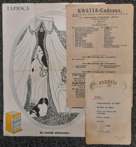 Hotel Italia – Milano, 1933 bestaat nog. De menu kaart zal aangepast zijn.