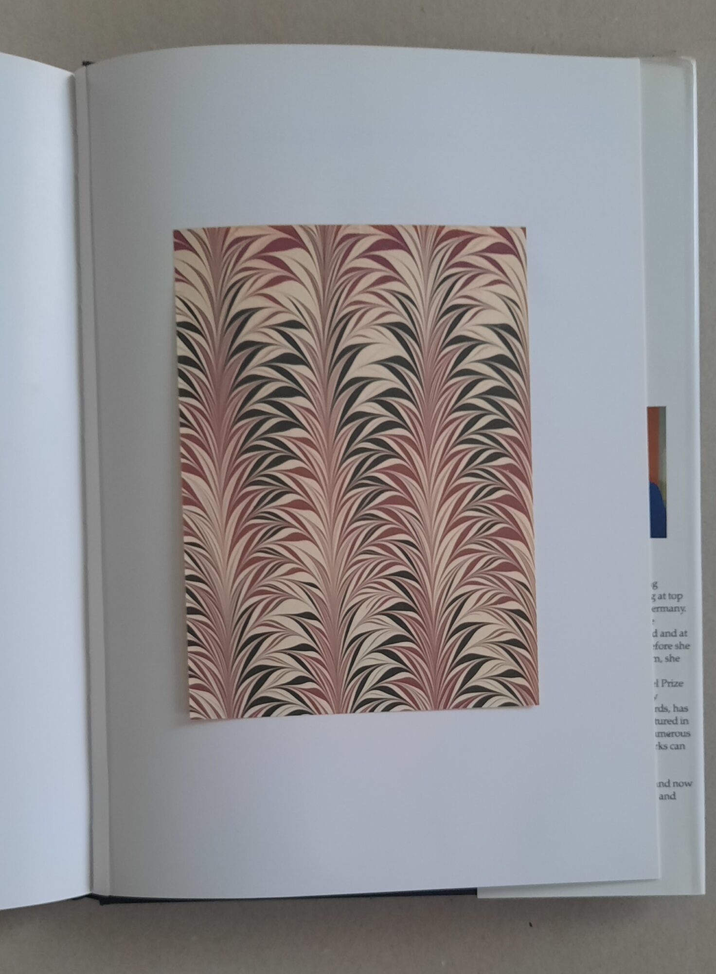 Elke uitgave is voorzien van een uniek monster. In dit exemplaar is een Hand Marbled Design van Cockerell opgenomen.