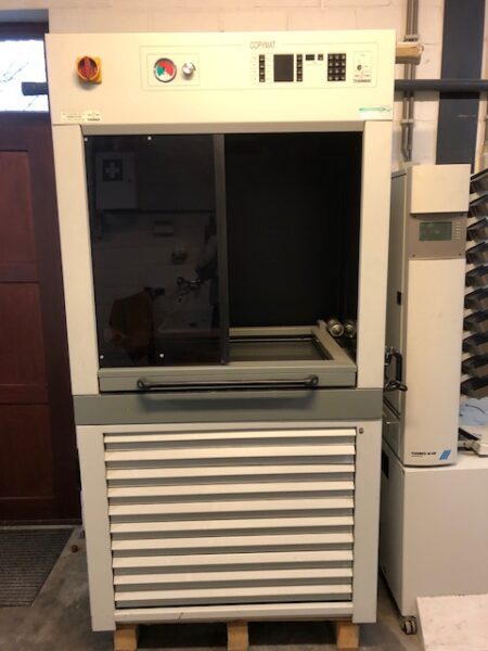 De machine staat al een tijd stil, moet worden nagekeken, heeft altijd gewerkt, UV-lamp moet vervangen worden. Ladenkast is geforceerd, sleutel in slot afgebroken.