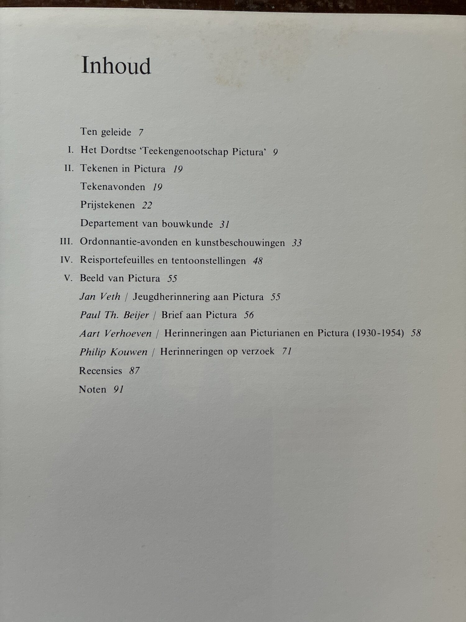 Deze uitgave over het Dordtse tekengenootschap Pictura verscheen in 1975 naar aanleiding van het 200-jarig bestaan van het genootschap op 1 oktober 1974